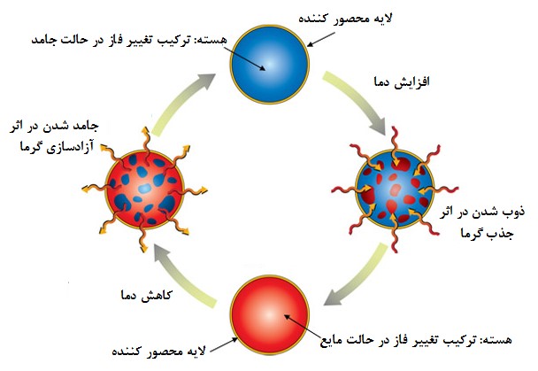 شکل12. نحوه عملکرد ترکیبات تغییر فاز محصور شده با تغییر دما [13].