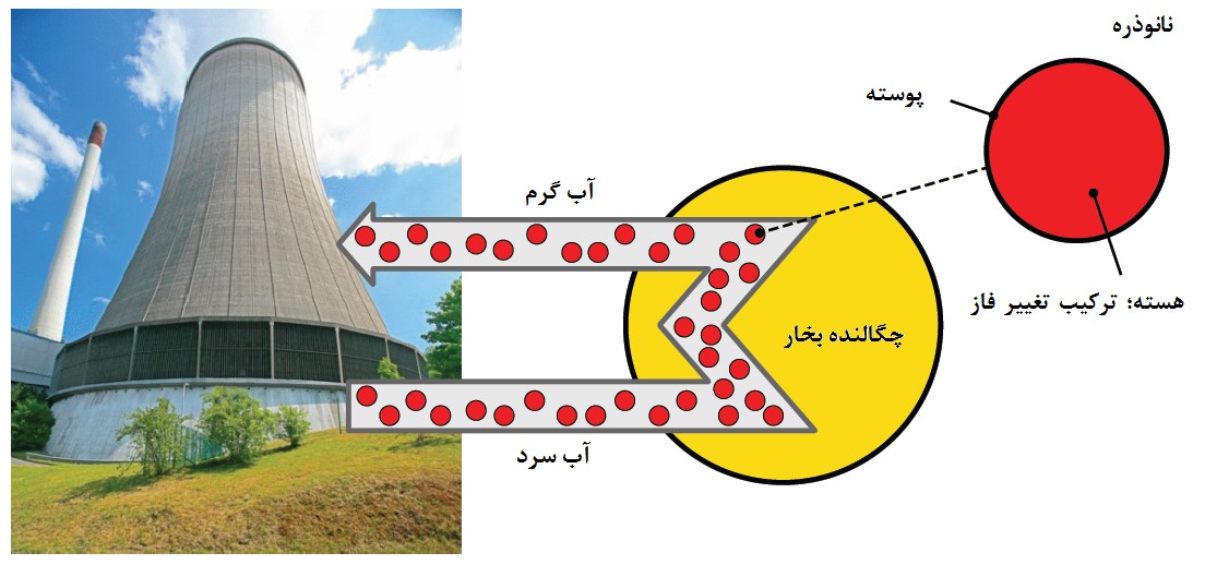 شکل 15. استفاده از نانوسیال بر پایه نانوذرات سرامیکی با قابلیت تغییر فاز برای انتقال حرارت [9].