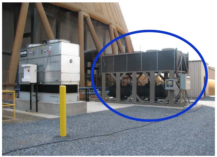 شکل 16. نمونه اولیه[30] از خنک کننده ترموسیفون ساخته شده توسط شرکت Johnson Controls که در سال 2013 به صورت هیبرید در نیروگاه Bowen آمریکا مورد آزمایش قرار گرفته است [11].
