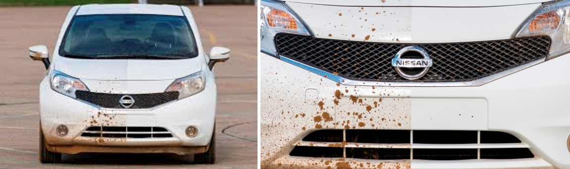 رویکرد نیسان، نه فقط همانند عملیات شستشوی ماشین وقت گیر و گران قیمت نمی باشد، بلکه بسیار کوتاه نیز میباشد. این شرکت اولین مجموعهای است که از رویکرد ضدآب و ضد چربی صنعتی تحت عنوان Ultra-Ever Dry در بدنهی وسیله نقلیهی خود استفاده نموده است. این رویکرد به منظور دفع تمامی مایعات آبی و برخی از مایعات روغنی از بدنهی خودرو با استفاده از یک لایهی محافظ هوا طراحی شده است. هنگام عبور یک خودروی با این پوشش از یک گودال گلآلود، به نظر میرسد این ماده از چسبیدن گل و لای جاده و چاله ها به بدنهی خودرو ممانعت به عمل می آورد و خودرو را پاکیزه نگاه خواهد داشت [53]. شکل 7 تصاویری از این خودرو را نشان میدهد.