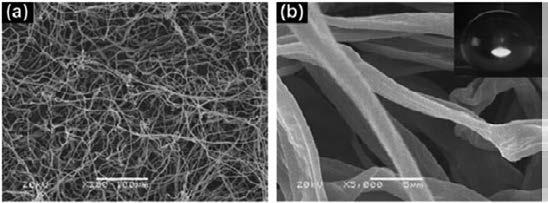 - اصلاح یک سطح زبر با یک ماده با انرژی سطحی پایین: در این روش پوششهای نازکی از مواد با انرژی سطحی پایین به روشهای مختلف بر روی سطوحی که زبر هستند، ایجاد میشود. معمولاً برای ایجاد چنین سطوحی از تلفیق دو روش بالا استفاده میشود. از متداولترین روشهای مورد استفاده برای ایجاد سطوح ابرآبگریز میتوان به رسوبدهی الکتروشیمیایی [17-15]، لیتوگرافی[20و 19]، خودچینش و روشهای لایه لایه [25-21]، الکتروریسی [26]، روشهای سل-ژل و واکنشهای پلیمری کردن[29-27] اشاره کرد.