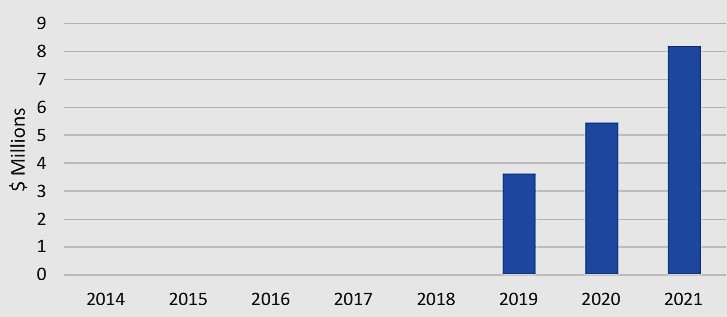 با توجه به بحث اهمیت تشخیص و ارزیابی DNA، RNA و ژنها در مباحث پزشکی، قضایی و صنعت کشاورزی و دامپروری، بازار امیدوار کنندهای برای نانوحسگرهای این صنعت پیش بینی میشود. بر اساس گزارش موسسه NanoMarkets، هر چند که در حال حاضر بازار بالقوهای برای نانوحسگرهای مورد استفاده جهت تشخیص ژنهای معیوب وجود دارد، اما انتظار میرود که رشد اصلی این بازار از سال 2019 با میزان 64/3 میلیون دلار شکوفا شود و به 19/8 میلیون دلار در سال 2021 برسد (شکل 3) [3].