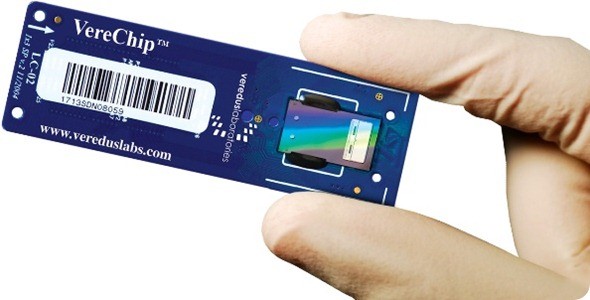 شرکت Veredus Laboratories که در زمینه سیستمهای تشخیص ژن فعالیت میکند، تراشه سیلیکونی با نام تجاری VereChip را وارد بازار کرده است که در حقیقت از ترکیب همگرای سیستم میکرو الکترو مکانیکی ( نوعی حسگر نانویی که نسبت به تغییرات مختلف مثل وزن، دما و یا فشار سیگنال تولید میکند.) و میکروسیال[14] ساخته شده است تا به صورت خودکار، تلفیق مراحل تکثیر DNA چند شاخه[15] و شناسایی ریزآرایهها[16] امکان پذیر گردد (شکل 7) [7].