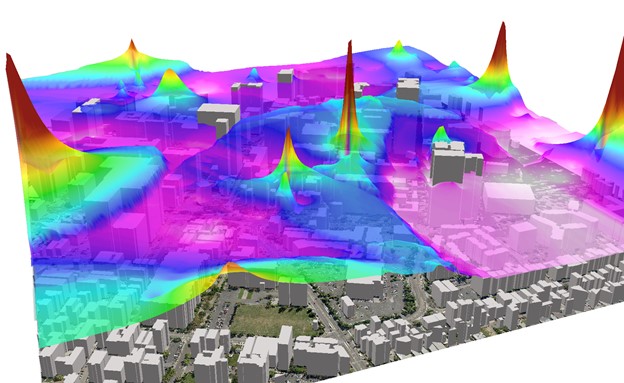 شکل 2. نصب شبکه ای از حسگرها در سطح شهر لس آنجلس آمریکا جهت ایجاد یک مدل برای پایش کیفیت هوا [2].