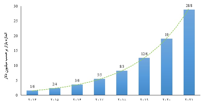 شکل 4. پیش بینی بازار نانوحسگرهای پایش بر آلودگی ذرات معلق در هوا [4].