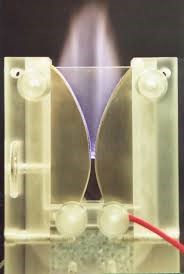 شکل 1 تصویری از پلاسمای تخلیه قوسی خزنده را نشان می‌دهد که در آن پلاسمای قوسی بین دو الکترود تشکیل می‌شود و به وسیله شارش گاز به سمت محلی که در آنجا فاصله الکترودها بیشتر است، هدایت می‌شود.