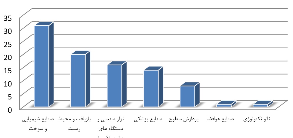 شکل 2- زمینه کاربردی تخلیه قوسی خزنده در صنایع مختلف در تحلیل 120 اختراع مرتبط