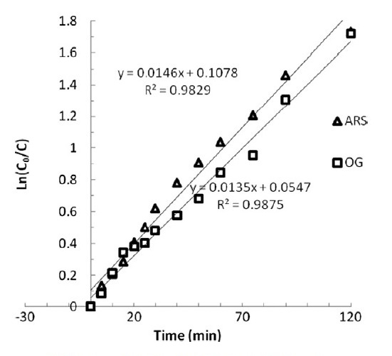 شکل 9- بررسی میزان بی رنگ شدن آب دارای ARS و OG[6]
