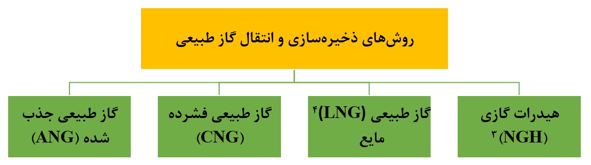 شکل ۳. روشهای ذخیرهسازی و انتقال گاز طبیعی