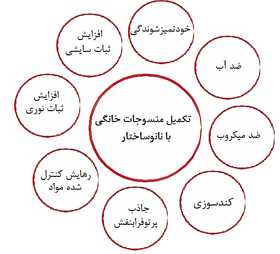 شکل 1، برخی از خواص منسوجات خانگی تکمیلشده با نانو ساختارها را نشان میدهد.
