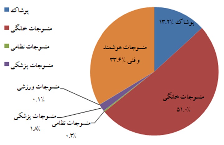 شکل 2. بازار جهانی منسوجات در سال 2012 (درصد از سهم بازار)