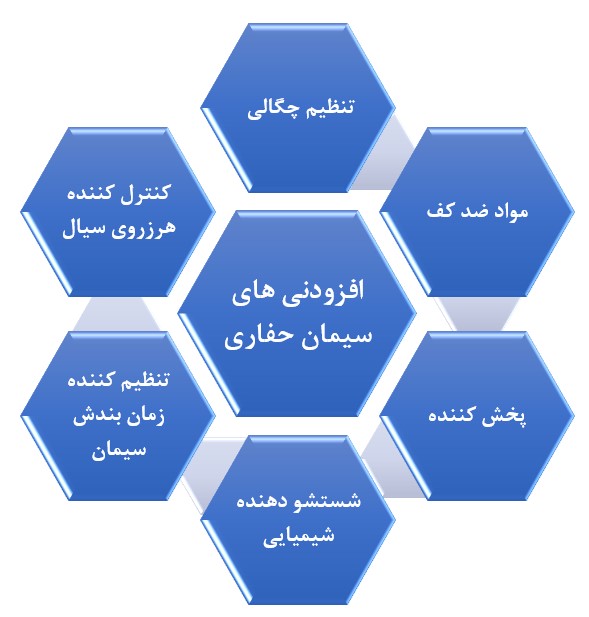 سیمانکاری چاههای نفتی به منظور اتصال لولههای جداری به دیواره چاه، ایجاد ارتباط بین سر چاه و سیال موجود در مخزن، جلوگیری از ورود سیالهای ناخواسته به درون چاه در حین برداشت از مخزن، جلوگیری از ریزش چاه و افزایش استحکام آن و موارد دیگر است. سیمان پرتلند مهمترین ماده مورد استفاده در سیمانكاری چاههای نفت و گاز است که به لحاظ شرایط دما و فشار بالای چاههای نفت و گاز، با نوع ساختمانی آن متفاوت است. به طور کلی افزودنیهای اصلی سیمان حفاری در شکل 2 نشان داده شده است.