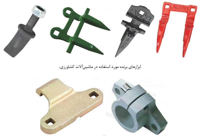 ابزارهای برنده و قطعات نگهدارنده مورد استفاده در ماشینآلات کشاورزی.
