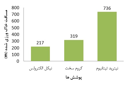 میزان مسافت خاکورزی شده توسط انواع پوششهای تحت سایش لایه نشانی شده بر روی گاو آهن.