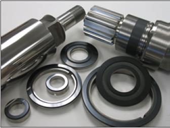 میتوان شفتها، آسترها و پروانهایهای پمپهای مورد استفاده در فرآوری مواد غذایی را جهت بهبود خواص سایشیشان پوششدهی کرد. سطوح شفتها، آسترها، و یا حتی سیلها و بلبرینگها معمولا پوششدهی میشوند. سطوح پوشش داده شده بر روی سطوح پرداخت شده با زبری سطح در حدود 16-10 میکرون-اینچ سوار شوند که این عمل موجب روانکاری سطوح سیلها خواهد شد. پروانهایها معمولا توسط پوششهای حاوی کاربید برای محافظت در برابر سایش و فرسایش لایهنشانی میشوند. تمامی این پوششها جایگزین مناسبی آبکاری کروم سخت میباشند. همچنین پوشش DLC به دلیل سختی بالا از 7000-2000 ویکرز و چسبندگی عالی جهت لایهنشانی بر روی قطعات ذکر شده بسیار مناسب میباشد.