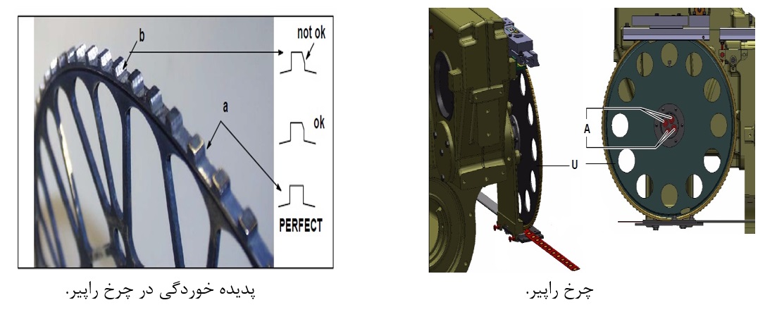 چرخ راپیر یک چرخ دنده بزرگ و سبک از جنس مواد پلیمری یا فلز آلیاژی است و وظیفه آن تماس پیدا کردن با تسمه راپیر برای ایجاد یک سیکل کامل بافندگی است. حرارت و سایش دائمی قطعات باعث بروز فرسودگی و خوردگی قطعات مخصوصا دندانه­های چرخ راپیر می­گردد. قیمت این قطعات مورد استفاده در دو طرف ماشین­ آلات تقریبا 300 یورو می­باشد که  برای تعویض آن نیاز به 12 ساعت توقف دستگاه است. در دستگاه­های بافت فرش­های ماشینی تعداد 6-4 عدد از این قطعه در مدت دو سال استفاده می­گردد که انتظار می­رود با استفاده از فناوری نانوپوشش­ها عمرکاری این قطعات به بیش از 10 سال افزایش یابد.