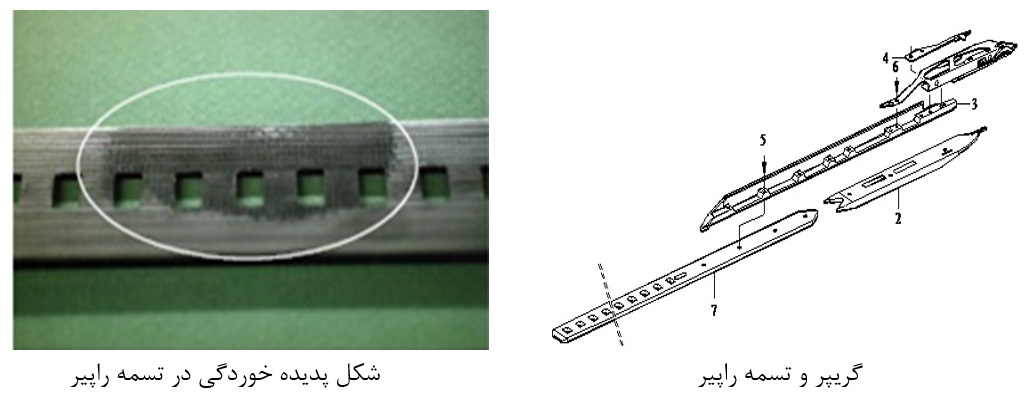 این قطعات با سرعت بسیار بالا در بین نخ­های تار در حرکت هستند. قطعه فلزی که گیره­ها را به تسمه راپیر متصل می کند دائما با نخ­های تار در حال برخورد و سایش می باشد. تعویض و سرویس قطعات گیره راپیر، نیازمند باز شدن تمام سیستم می باشد، از این­رو این فرایندها بسیار وقت گیر و هزینه بر می باشد. از طرفی قیمت هر کدام از گیره­های راپیر بسته به کمپانی سازنده، در حدود 2 تا 5 هزار یورو می باشد