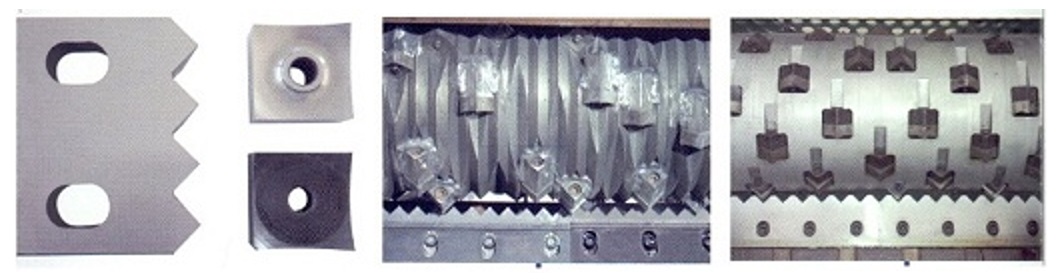 نمونهای از اتواع تیغههای به کار رفته در ماشینهای خردکننده لاستیک و پلاستیک