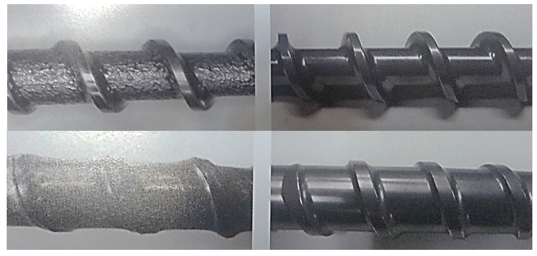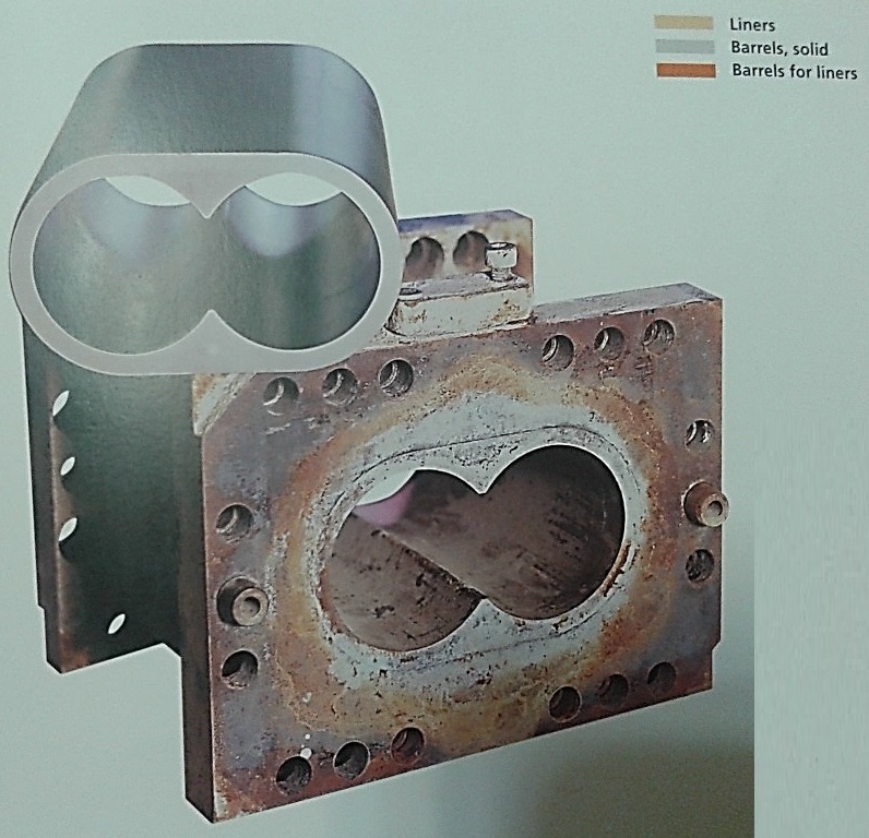 نمونهای از سایش و خوردگی سیلندر و لاینر اکسترودر دو پیچهای.
