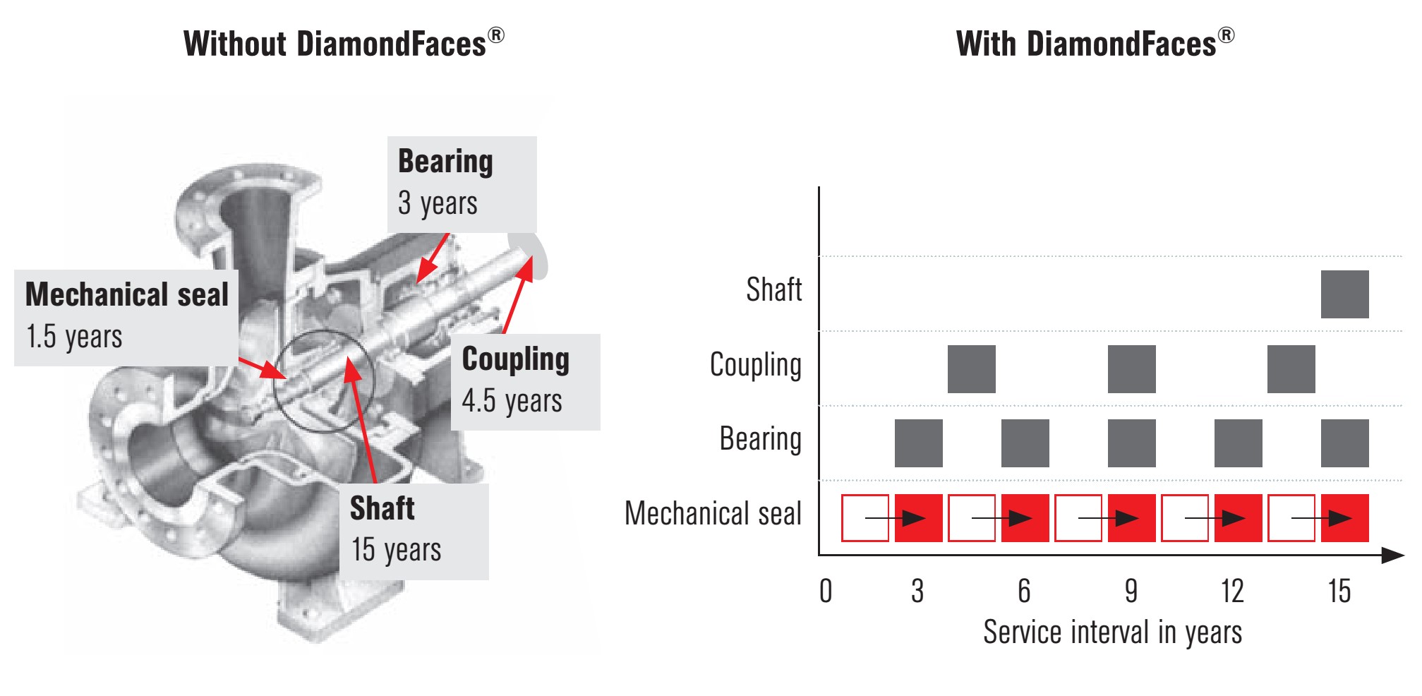 مقایسه عمر کاری پمپ گریز از مرکز با استفاده از پوشش DamondFace و بدون این پوشش