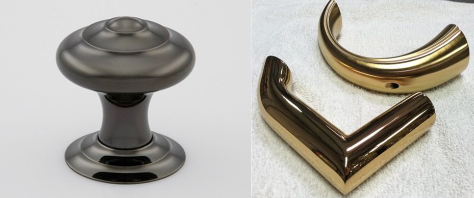 نمونه پوشش های PVD دستگیره ها در رنگ های سیاه خاکستری، طلایی و مسی