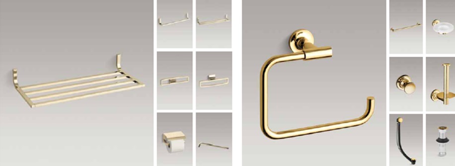 همچنین این شرکت برای ایجاد فضایی زیبا و دکوراتیو، یراق آلات سرویس های بهداشتی را به طور هماهنگ با شیرآلات طراحی و تولید نموده است که نمونه هایی از آنها را در شکل زیر مشاهده می کنید: