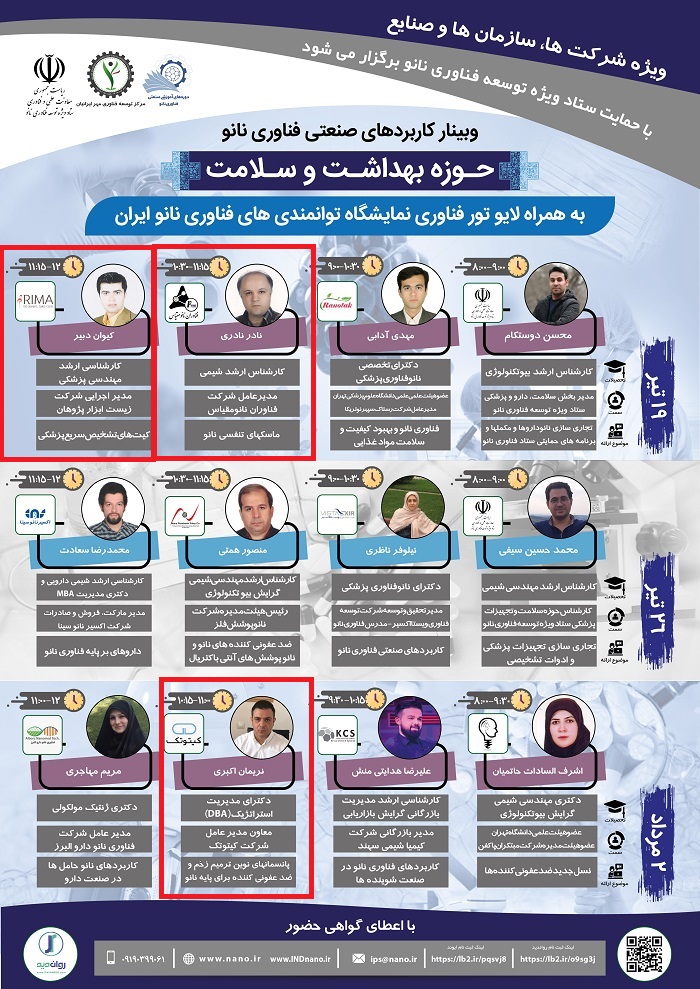 ?️در بخش رسانههای تخصصی صنعت، شرکتهای «کیتوتک»، «فناوران نانو مقیاس» و «نانو فراز سپاهان»، در این جشنواره بهعنوان شرکتهای فناور منتخب در فعالیت رسانهای و ترویج صنعتی نانو مورد تقدیر قرار گرفتند. برنامه اختتامیه بصورت لایو مجازی در صفحه اینستاگرام نانو و صنعت (INDnano,ir@)، پخش شد