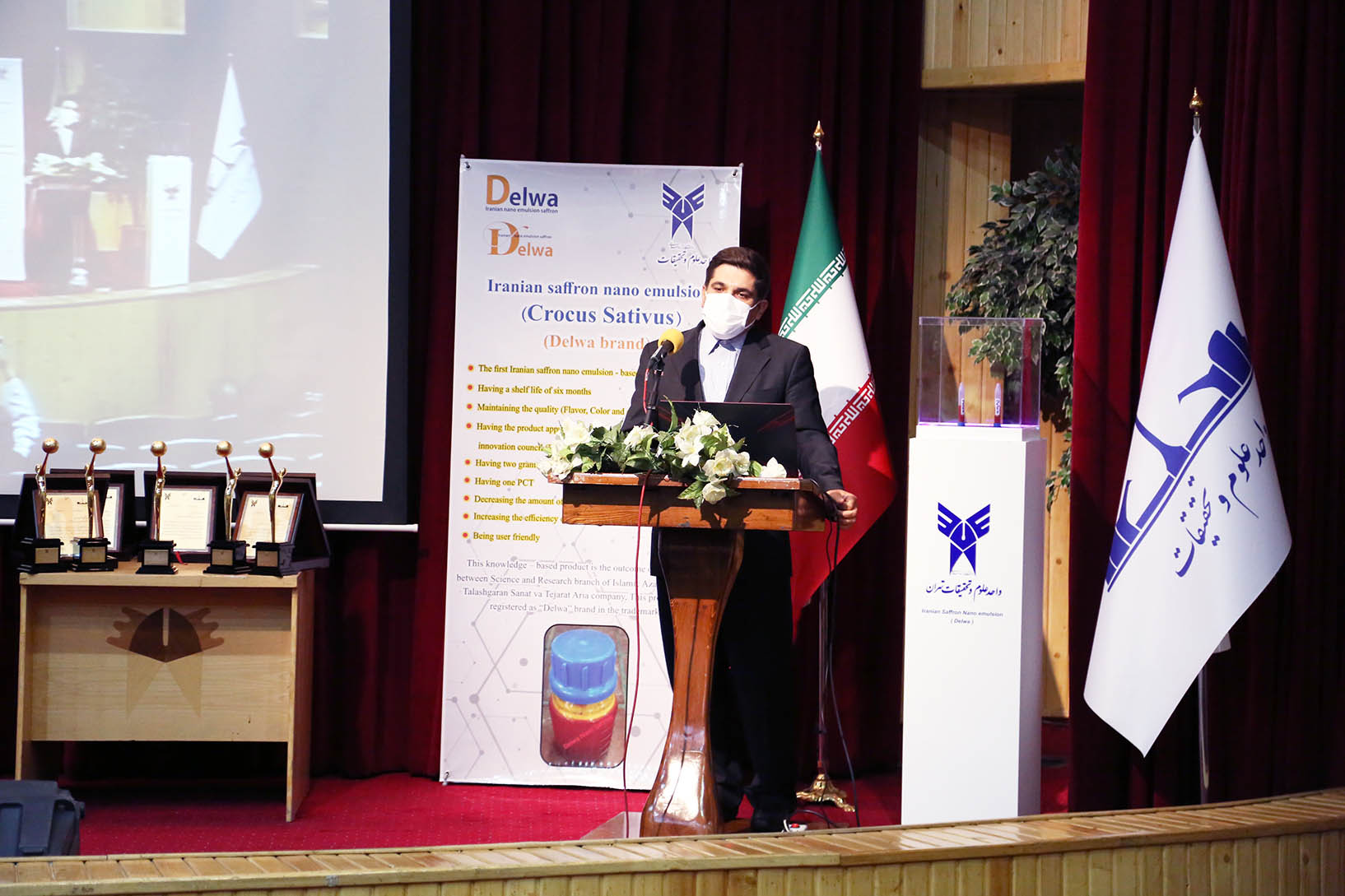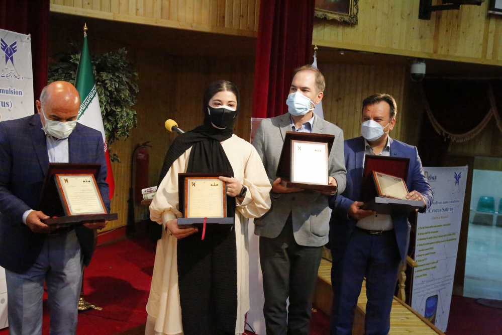 مراسم رونمایی از محصول دانش بنیان نانوامولسیون زعفران ایرانی مستخرج از طرح های پژوهشی برون دانشگاهی واحد علوم و تحقیقات با حضور دکتر جمشید صباغ زاده قائم مقام رئیس دانشگاه آزاد در این واحد، دکتر عزیزی مدیرکل محترم غذا و دارو وزارت بهداشت و درمان آموزش پزشکی کشور، دکتر پیمان صالحی معاون نوآوری و تجاری سازی ریاست جمهوری، دکتر بابائی معاون توسعه و مدیریت منابع واحد علوم و تحقیقات، دکتر ملک نیا مدیرکل کانونهای دانشگاه، صنعت و جامعه پژوهشگاه و شبکه آزمایشگاهی دانشگاه آزاد اسلامی، دکتر اشراقی مدیرکل ستاد ویژه فناوری نانو ریاست جمهوری، دکتر مشایخی رئیس مرکز رشد پژوهشگاه وزارت علوم، دکتر مظفری معاون پژوهش و فناوری واحد علوم و تحقیقات، مهندس مهدی رحیمیان، استاد محمدحسن ابریشمی پژوهشگر تاریخ کشاورزی ایران و تنی چند از اعضا هیات علمی و اساتید دانشگاه آزاد اسلامی واحد علوم و تحقیقات و همچنین برخی از شرکت های فعال در عرصه تولید و صادرات زعفران برگزار شد.
