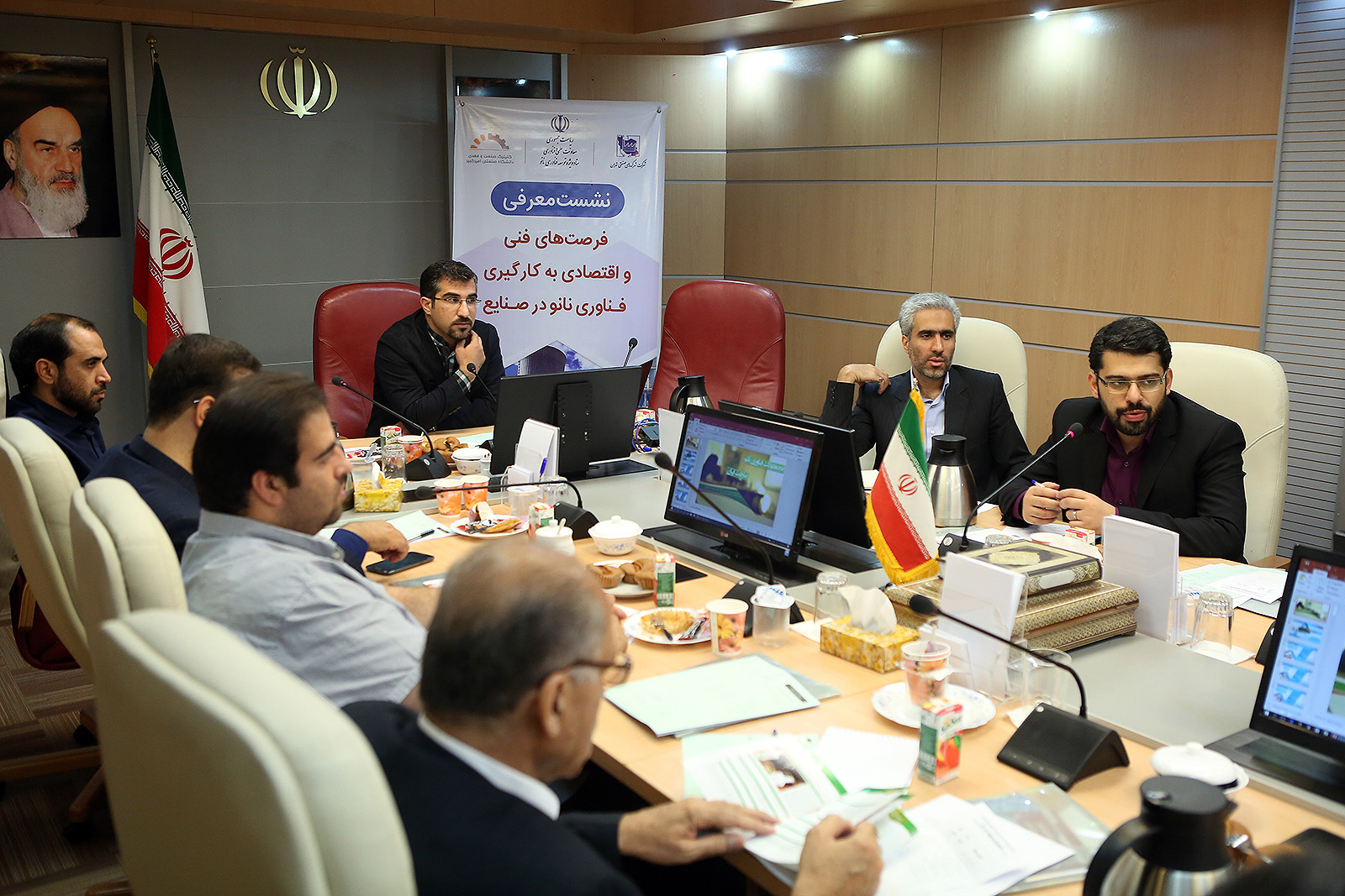 مدیران عامل تعدادی از شرکتهای صنعتی مستقر در شهرکهای صنعتی شمس آباد و نصیرآباد، طی نشستی که روز شنبه ۲۸ مردادماه ۱۳۹۶ در محل ستاد فناوری نانو برگزار شد، به بحث و تبادل نظر در خصوص فرصتهای فنی و اقتصادی بهکارگیری فناوری نانو در صنایع پرداختند.